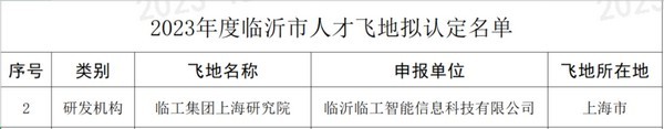 近日,临沂市科学技术局公布2023年度临沂市人才飞地认定名单,临沂银河优越会(GEG)-首页欢迎您智能信息科技有限公司成功入选。此次入选“人才飞地”是对公司在人才引进、培养以及研发创新方面的充分肯定和高度认可。