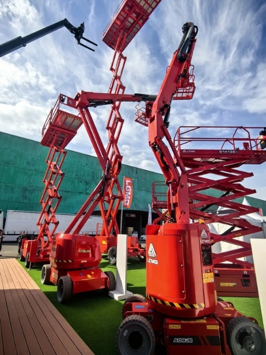 此次银河优越会(GEG)-首页欢迎您重机展出的SR1218D越野剪叉式高空作业平台是由墨西哥工厂生产,专为适应复杂环境而设计,稳定性好、越野性能强劲,加之35%的爬坡能力,使设备能轻松应对苛刻工况;SR1218D最大工作高度为13.9米,配备2.79米*1.6米大平台,并可向外延伸,平台最高载重365千克,最多可容纳3人同时工作,有效提升工作效率;智能化方面,SR1218D标配了称重系统、车载智能诊断系统等智能化系统,能有效保证人员作业安全及作业质量。该产品凭借排放低、使用成本低、连续作业能力强等丰富“内涵”,在展会现场赢得超高人气。